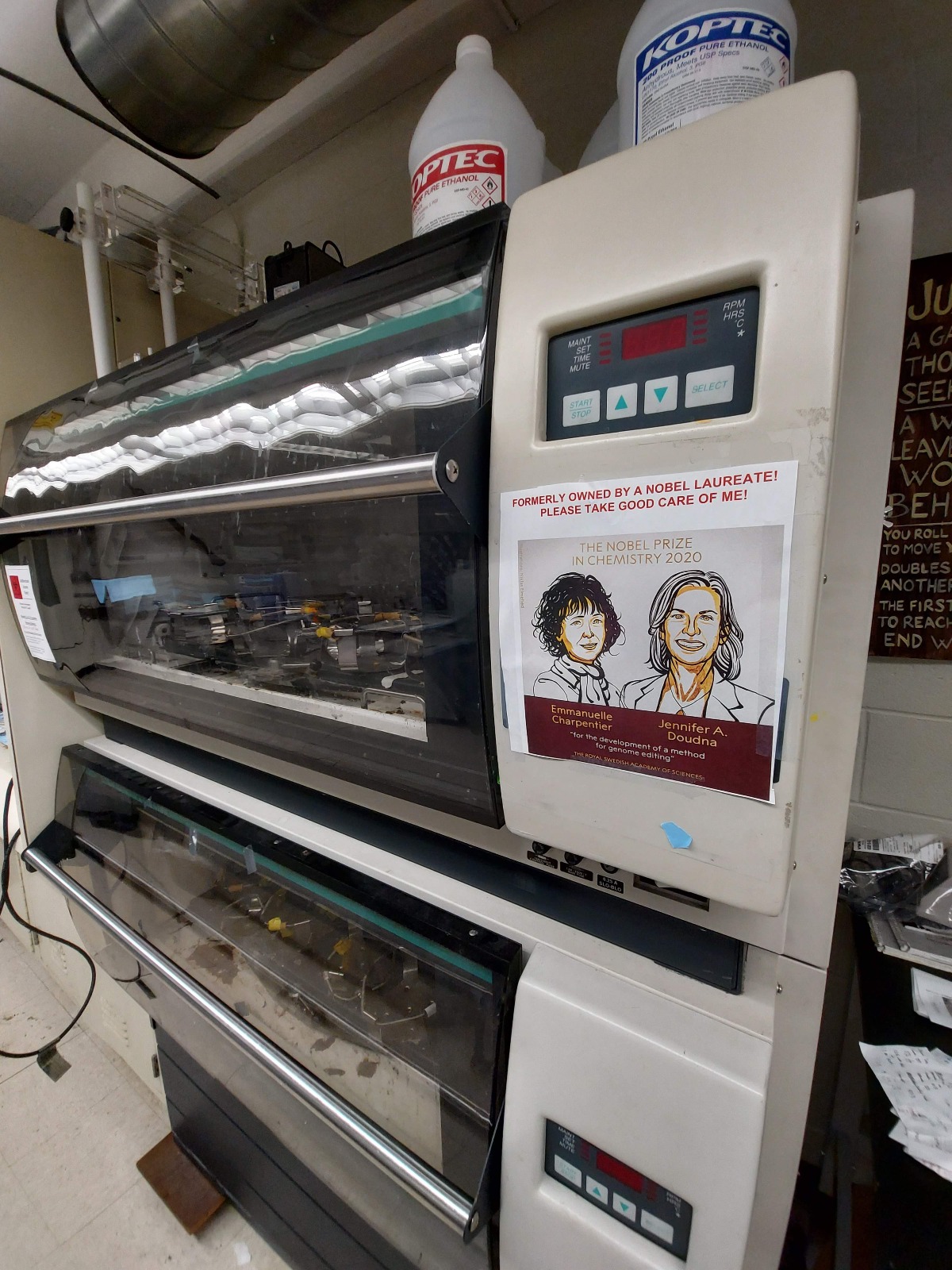 Miércoles, 7 de Octubre de 2020. Lo primero que veo al despertar es una oleada de notificaciones en mi teléfono, y no es para menos. Hace pocas horas se había anunciado a Jennifer Doudna y Emmanuelle Charpentier como galardonadas con el premio Nobel de Química “por el desarrollo de un método de edición genética”, comúnmente conocido como CRISPR-Cas (Imagen 1). Al formar parte activa de este campo no pude dejar de emocionarme y correr hacia mi laboratorio para ver las reacciones de mi jefe y compañeros. Mi jefe, Dr. Mitch O’Connell, quien previamente había trabajado en el laboratorio de la doctora Doudna antes de montar su propio laboratorio, ya nos había dejado una pequeña sorpresa al llegar (Imagen 2).